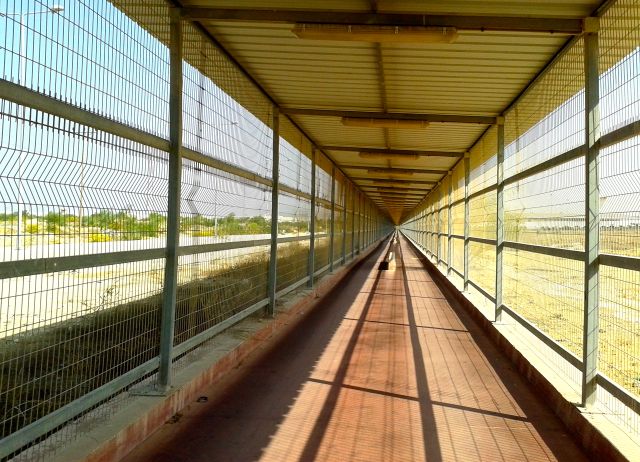 Um aus Gaza wieder nach Israel zu kommen, muss man zu Fuß durch diesen langen käfigartigen Gang gehen. Es ist wie ein Marsch von einer Welt in eine andere.
