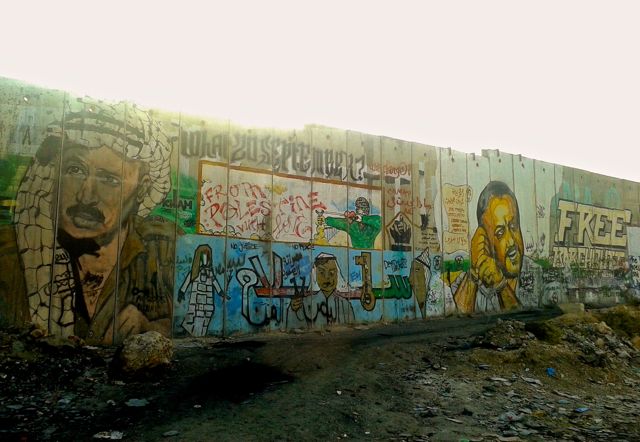 Bilder von Jassir Arafat schmücken viele Teile der Mauer. Er starb im Jahr 2004, wird aber noch immer in der palästinensischen Bevölkerung als geistiger Führer verehrt. Die Tatsache, dass in Arafats Leiche erhöhte Plutonium-Werte festgestellt wurden, er also möglicherweise vergiftet wurde, lässt ihn nur noch mehr zum Helden werden.